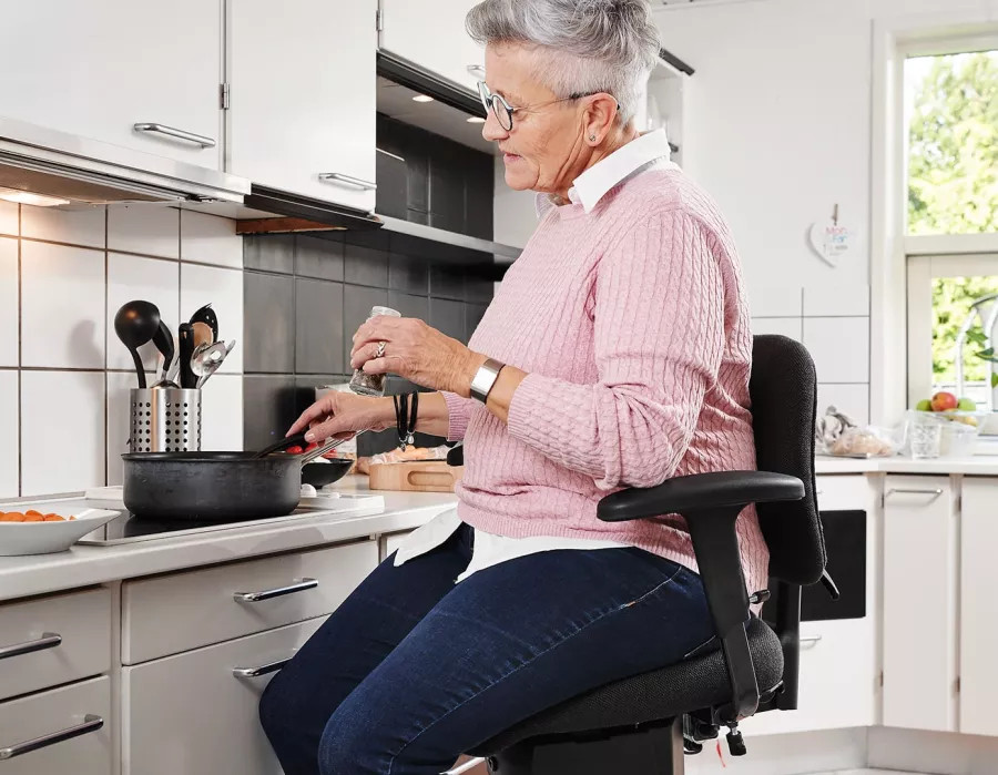Ein VELA-Küchenarbeitsstuhl nimmt Ihnen viele dieser Herausforderungen ab. Kochen Sie ohne Schmerzen im Sitzen, räumen Sie die Spülmaschine eigenständig ein und aus und erlangen Sie Ihre Freiheit in den eigenen vier Wänden wieder.