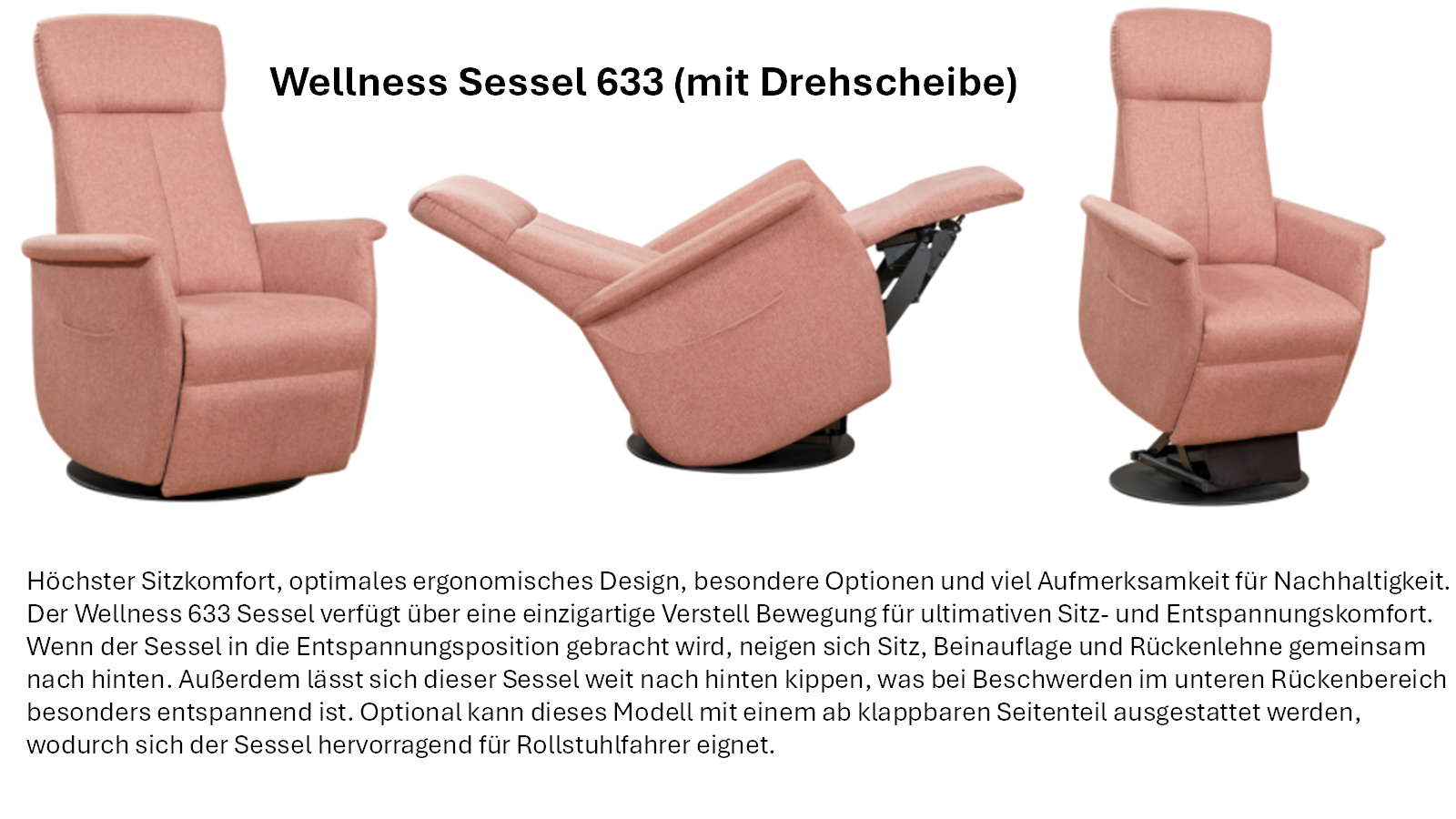 Mehr Daten zum Wellness Sessel 633 in der Version Standard und Optional