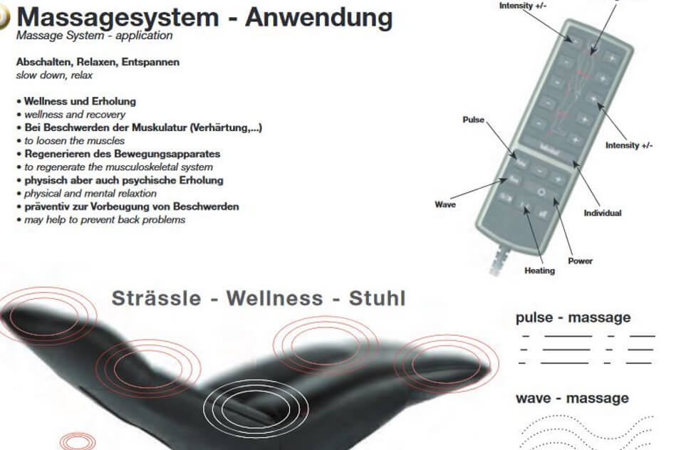 - Alle Massageeinheiten können auch individuell angesteuert werden